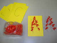 The picture on the left was an activity I used to help letter recognition. The younger children simply placed the firefighters on the letters. The older children were able to look at the letter and make their own on the side. Some of the children were even creating their full names out of the firefighters. The picture on the right are things I had in my block center. There were firetrucks, firefighters, and lincoln logs. Children created fire stations, houses, and even places to store their fire trucks.